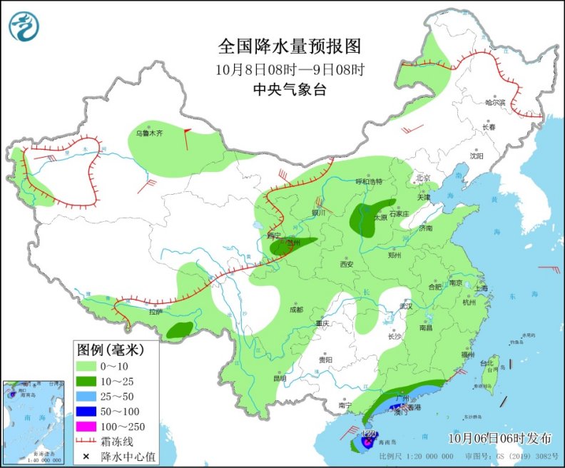图1 全国降水量预报图(10月6日08时-7日08时)
