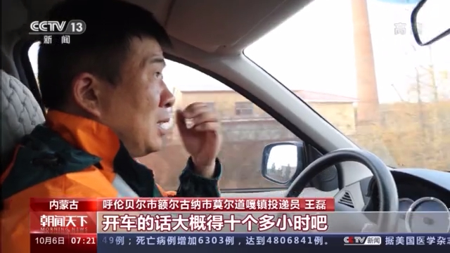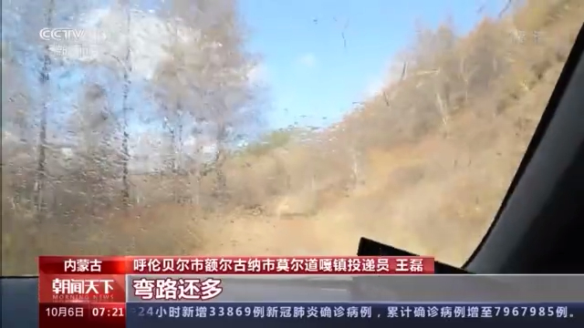 内蒙古呼伦贝尔市额尔古纳市莫尔道嘎镇投递员 王磊:支局距咱今天要去的连队单程是374公里,往返就700多公里,如果我要是开车的话,大概得十个多小时才能走个往返。马上没信号了,你们要打电话赶紧打,过一会咱就没有信号了。没信号的时间十个小时大概得有八九个小时没有信号。
