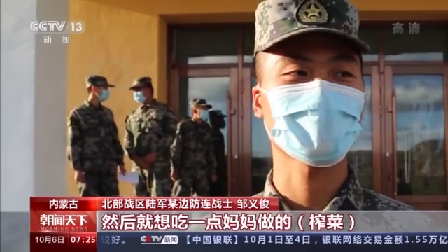 北部战区陆军某边防连战士 邹义俊:跟妈妈说,想家了,也请妈妈放心,我在这边挺好的。