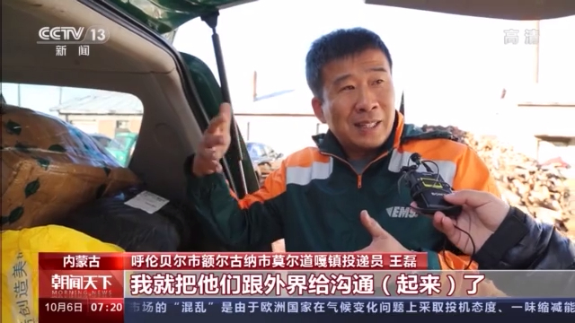 内蒙古呼伦贝尔市额尔古纳市莫尔道嘎镇投递员 王磊:我服务了几个边防连队是对外封闭的,我去投递我感觉我就在把他们跟外界给沟通起来了。