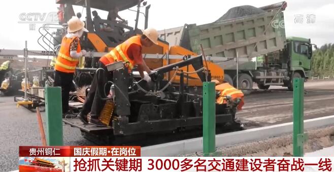 国庆长假,在贵州铜仁市各高速公路的建设现场有3000多名建设者坚守岗位,抢抓施工黄金期。在省级重点项目工程——江玉高速LM2标段的施工现场,记者了解到,江玉高速预计在10月底完成主线施工。近期天气晴好,为抢抓最后关键期,项目部所有人员都放弃休假,确保连续性生产不脱节。