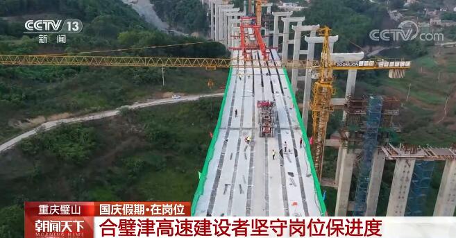 位于重庆璧山的仰天窝大桥是合璧津高速公路重大节点性工程,现场施工环境复杂。国庆期间,30多名奋战在一线的建设者在保障安全的前提下抢抓工期,预计将在10月15日完成整体桥面铺设工作。据了解,合璧津高速全线建成后将在重庆二环和三环高速之间形成新的连接,极大缓解绕城高速的通行压力。