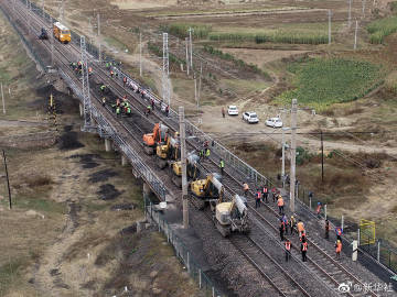 #国庆假期我在岗#【#大秦铁路集中修#】目前,大秦铁路开始秋季集中修,约2万名施工人员正同时在653公里的铁道线上开展大规模、立体式维修养护施工,以保障冬季煤炭运输的安全、稳定进行。这是近年来大秦铁路施工量最大、投入人力最多的一次集中修。