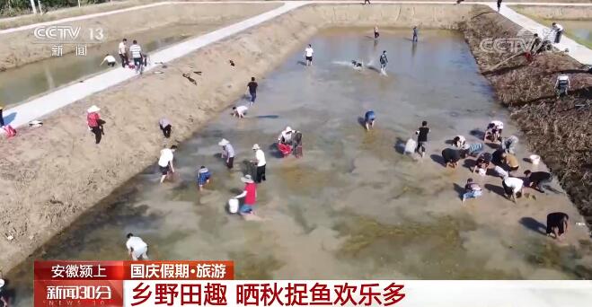 国庆假期,还有不少人避开城市的喧嚣,选择走进乡间田野感受自然。在管子故里的安徽阜阳市颍上县的农庄里,钓鱼、抓鱼、晒秋等活动吸引了很多游客前来体验,人们在游玩的同时也感受到丰收的喜悦。