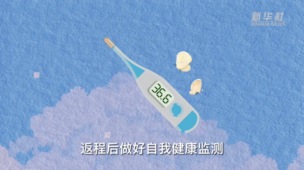 返程后做好自我健康监测,密切关注自身及家人的身体状况,如出现发热、干咳、嗅味觉减退或丧失等不适症状,立即就近就诊,就医途中全程佩戴口罩,避免乘坐公共交通工具。要密切留意疫情走势,返回后若发现近14天到过中高风险地区以及有本土疫情报告的城市,请主动向社区报备并配合做好疫情防控措施。