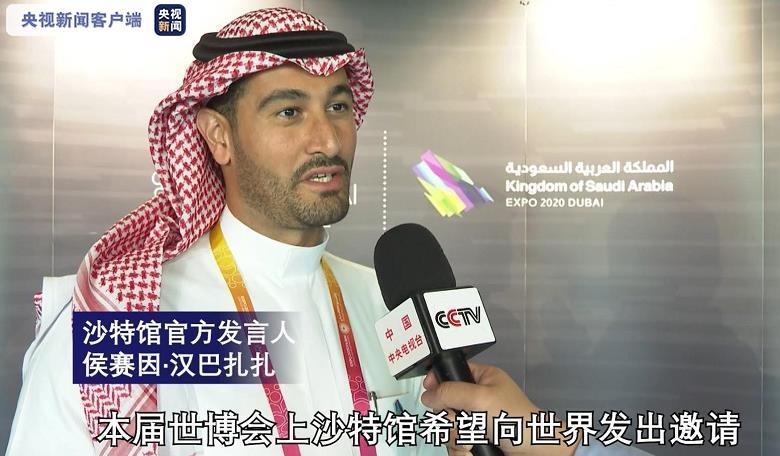 沙特馆官方发言人侯赛因·汉巴扎扎表示,沙特馆向世界发出邀请,希望观众通过探索沙特馆,了解沙特的过去,现在和未来,理解沙特的发展理念。(总台记者 周宣 米春泽 姚书博)