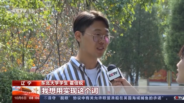 东北大学学生 霍佳锐:如果让我用一个词来形容我们的祖国,我想用“实现”这个词。因为我们的祖国正在实现对人民许下的每一个承诺,而我以及我身边的朋友、同学、亲人们也在实现我们每个人自己的愿望和梦想,所以我想用实现这个词。我在今年的上半年,还是在云南的一个西部计划的志愿者,是当地的一名支教老师。我是刚刚回到大学继续读书。我们在云南的大山里亲眼看到大桥飞架,天堑变通途,看到高速的通车,从我们这个小县城到市区的路程从两个多小时变成了四十分钟的高速。很多孩子他们之前没有走出过大山,但是这个路通了之后,孩子去海边看过海了,对于整个世界的认识,像给他们打开了一扇窗一样。