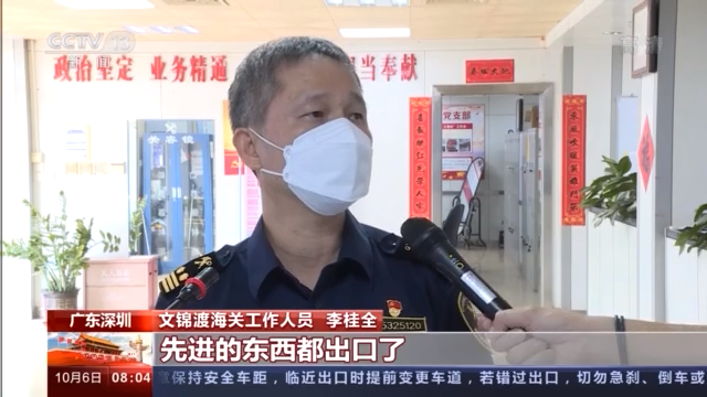广东深圳文锦渡海关工作人员 李桂全:以前出口的都是一些比较初级的产品和农产品,现在我们中国好多机械设备、先进的东西都出口了。