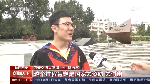 西安交通大学博士生 鞠浩然:就以我本身来说的话,其实我出身是一个普通工薪阶层家庭的孩子,正常来说我可能没有那么多机会去看这个世界,去读到博士这样的一个学位。但是由于国家留学基金委的一个资助,我有这个机会出国,然后家里也没有负担任何的费用,可能对于我来说,这就是一个很好的机会,去提升自己的能力。这个过程肯定是国家去资助,去付出。
