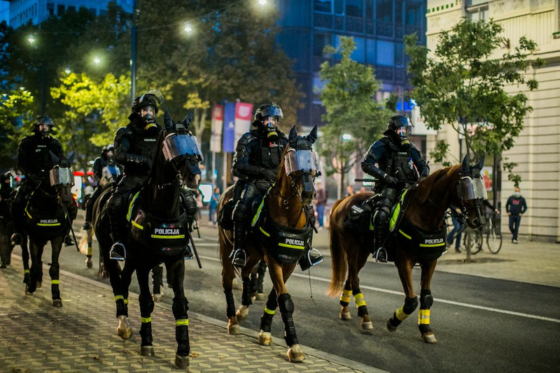 10月5日,在欧盟西巴尔干领导人峰会举行前夕,斯洛文尼亚首次启动了《警察职责与权力法》。当天,警方采取限制措施,封锁了首都几个重要场所,以防止抗议人员聚集,但依然有3000名民众前来抗议。报道称,一辆参会的外国使团车辆被围困,警方采用喷水器、泡沫弹、骑兵、警犬等方式进行干预。