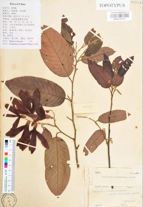 裴盛基、李延辉采集的望天树模式标本。西双版纳热带植物园供图