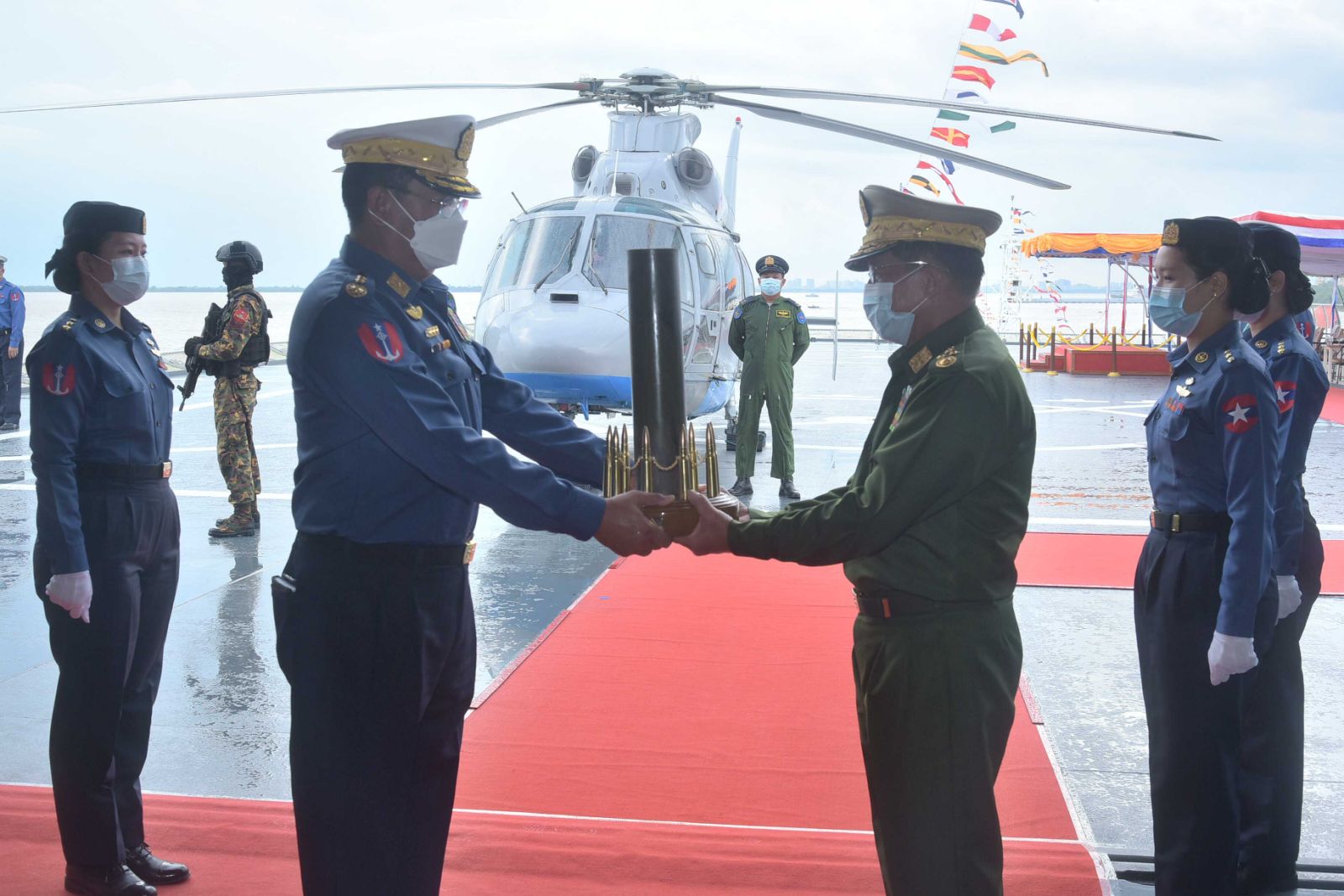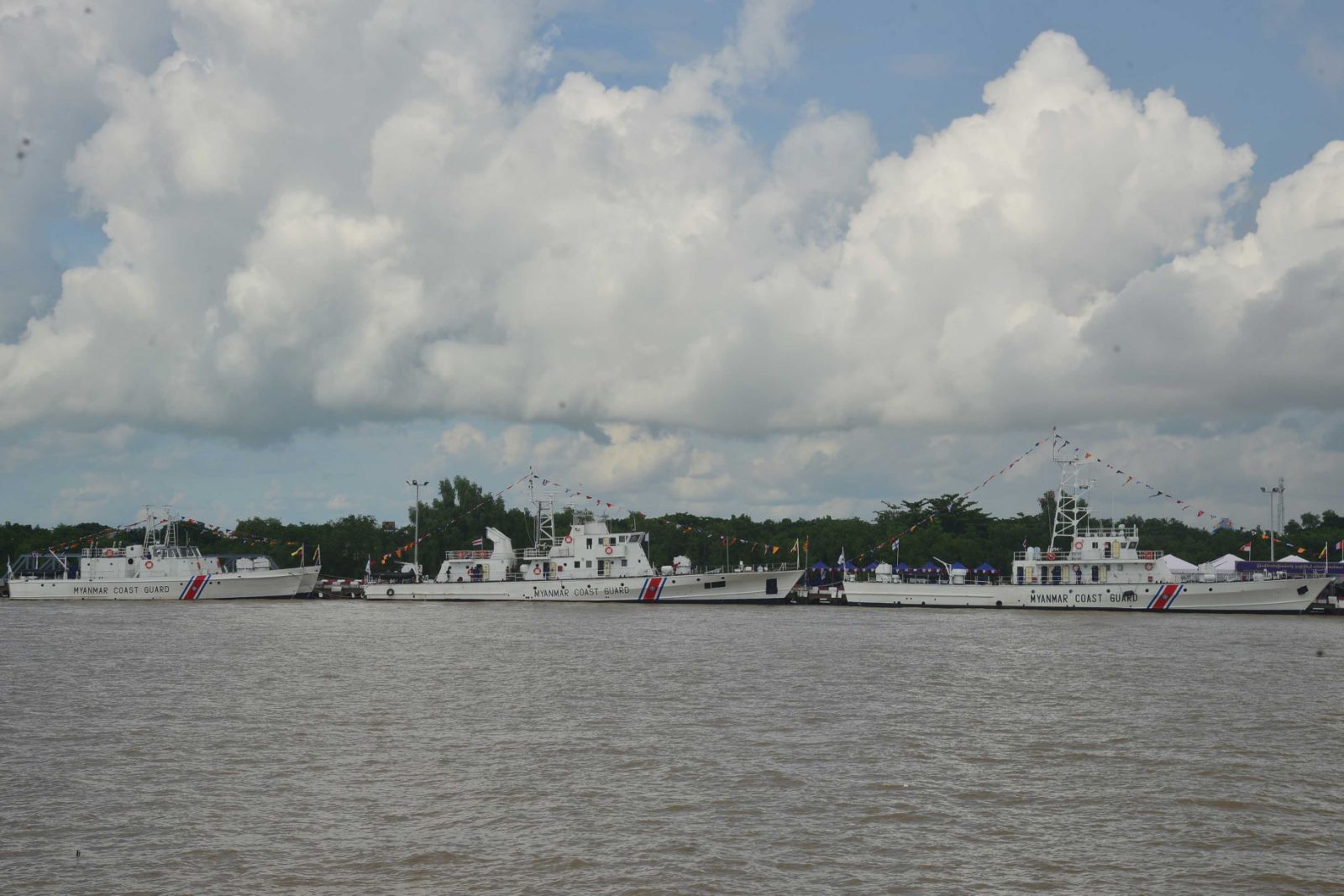 当地时间10月6日,缅甸海岸警卫队成立仪式在仰光河举行。该部队隶属于缅甸海军,下辖四艘武装海警船。缅甸国家管理委员会主席、国防军总司令敏昂莱在仪式上致辞时说,这将提升缅甸的海上执法能力,保障海上安全。