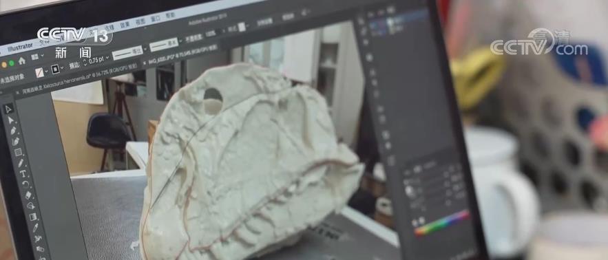 给恐龙画像,尊重科学是关键。提笔前,画师要和研究人员充分沟通,熟悉这只恐龙的特点,还要把化石或者化石模型拍照,导入电脑中作为画稿的基础。