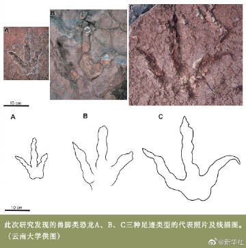#1.9亿年前的兽脚类恐龙足迹点#【#研究人员发现云南最大兽脚类恐龙足迹点#】记者从云南大学获悉,该校脊椎动物演化研究院研究团队近期在云南滇中盆地发现了一处约1.9亿年前早侏罗世晚期的兽脚类恐龙足迹点,这也是目前云南发现的最大兽脚类恐龙足迹点。相关成果已于10月5日在国际学术期刊《PeerJ》在线发表。