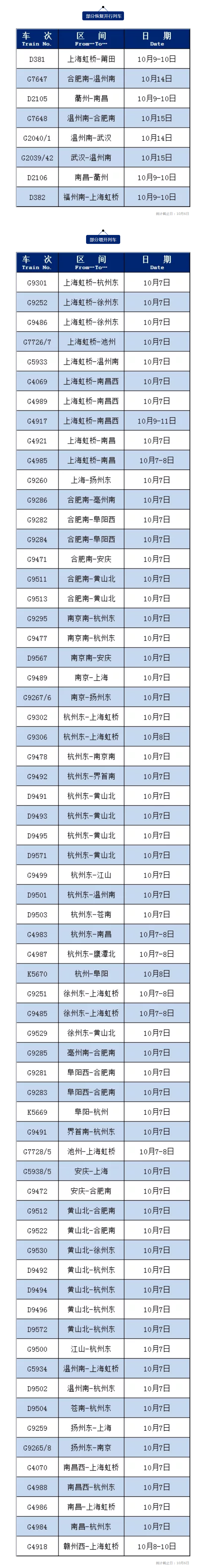 宁波、温州南、蚌埠南、徐州东、淮南南等车站优化高峰日旅客进出站流线,防止人员集聚堵塞,保持通道畅通,同时通过线上线下相结合的方式,为老弱病残孕等重点旅客提供爱心助行服务。杭州客运段、上海客运段加强旅客乘降组织,落实落细疫情防控措施,坚持2小时对列车卫生间、洗手池、扶手等进行一次消毒,提醒旅客全程规范佩戴口罩。合肥客运段在北京、宁波、安庆等客流量较大的重点区段,组织“党员突击小分队”和“青年志愿者团队”,在车厢内帮助有需要的旅客中转换乘、提携行李。上海工务段、杭州供电段、徐州电务段、合肥车辆段等单位全力做好设备设施检修维护,确保设备运行安全可控。