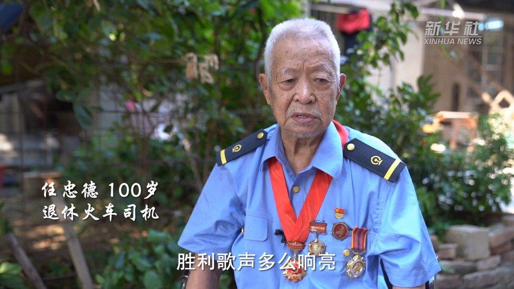 【#百岁火车司机回忆抗美援朝战场经历#】百岁老人任忠德是中国铁路南宁局集团有限公司柳州机务段的一名退休火车司机。他在1951年主动请缨奔赴抗美援朝战场,开着火车在战火中穿梭,为志愿军运送军用物资,曾为此身负重伤。国庆假期,任忠德在自家院子里高歌一曲《歌唱祖国》,回忆那段峥嵘岁月。(记者黄凯莹、梁舜) 新华社的微博视频
