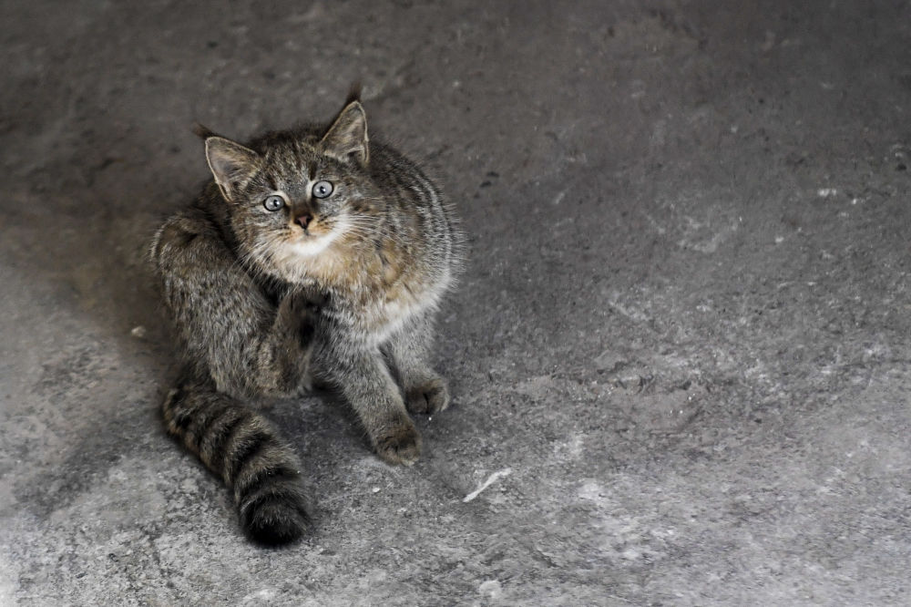 这是5月1日在西宁野生动物园拍摄的一只人工救助的荒漠猫。