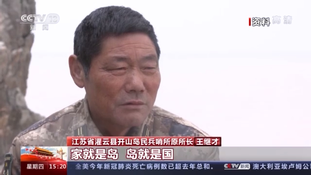 江苏省灌云县开山岛民兵哨所原所长 王继才:家就是岛,岛就是国。我们俩的一辈子就是守好这块国土。开山岛虽小,它是中华人民共和国的一部分,我每天要把五星红旗高高升起在开山岛上空。