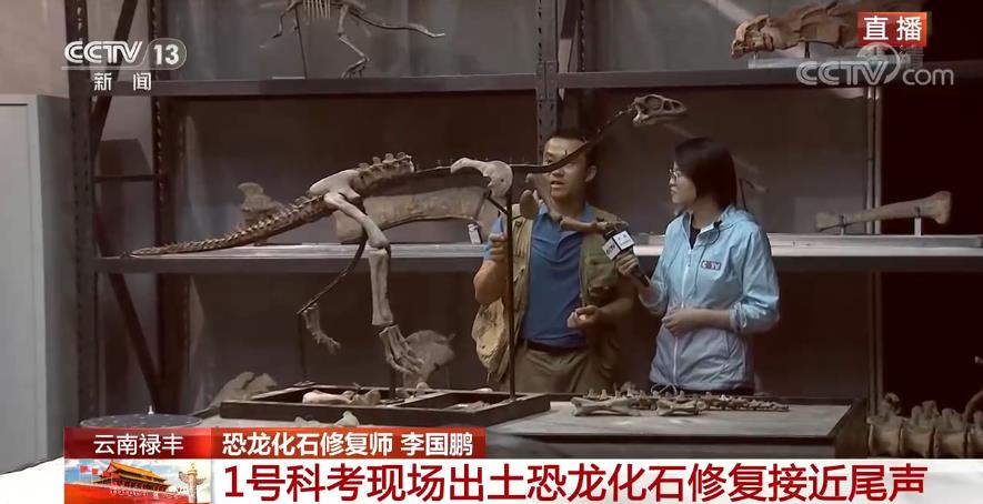 目前2号科考现场的恐龙化石骨架,整体面貌已经显现,那之前出土的1号科考现场的恐龙化石修复工作进行到哪一阶段了?来连线正在恐龙化石修复中心的总台央视记者张艺瑾。