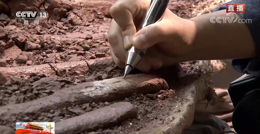 首先来关注2号科考现场。经过将近一周的工作,恐龙骨架已显现整体面貌,现场科考工作已经告一段落,后续工作如何推进,马上来连线正在2号科考现场的总台央视记者赵曙光。来给我们介绍一下你了解的情况。