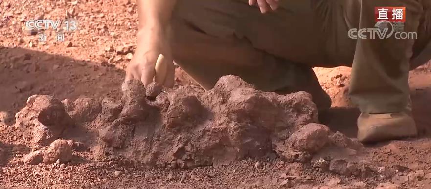 先来关注2号科考现场。在昨天(10月4日)的工作中,恐龙化石的尾椎部分已经逐渐显露出来,我们也通过专家的介绍,了解了恐龙尾巴的作用。今天现场工作进入了“啃硬骨头”阶段,会有什么样有趣的发现呢,马上来连线总台央视记者赵曙光。