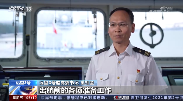 远望3号船党委书记 董相奎:当前,我船已高标准完成了出航前的各项准备工作。我相信,在全体同志的辛勤付出和共同努力下,我们一定能够圆满完成任务,向党和人民交上一份满意的答卷。