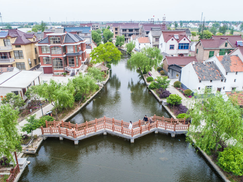 空中俯瞰浙江省嘉善县干窑镇的新泾港河道(2018年4月21日摄,无人机照片)。新华社记者 徐昱 摄