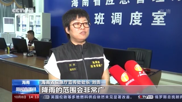 海南省应急厅宣传处处长 刘贡:目前来看,降雨的范围会非常广,琼州海峡长时间停航,相应的部门要做好应对的准备。