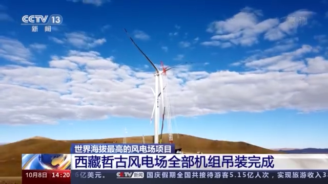 昨天(10月7日),世界海拔最高的风电场项目西藏哲古风分散式风电场10台机组全部机组吊装完成。