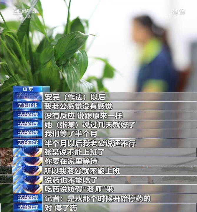 被害人 张先生妻子:我们当时去的时候,她(张某)给我老公看,说他身上有“老师”,可以给我们作法,作完你老公就好了。