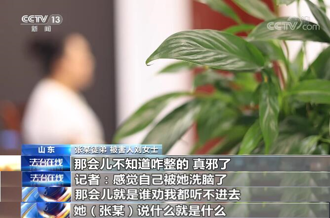 临沂市公安局河东分局特巡警大队一级警长 李恩善:主要是(张某)虚构的事,比如说,有个被害人叫王某,她当时是因为身体不舒服,听人说这个‘大师’有能力,然后找她看了。张某(是)怎么把控的呢?(她)说你得赶快弄,如果不治的话会有大事发生,你老公活不过什么时间。当时这个人就非常害怕,于是就瞒着自己的老公做了所谓的法事,这是一种方式方法,她无非是控制什么有牢狱之灾,血光之灾。