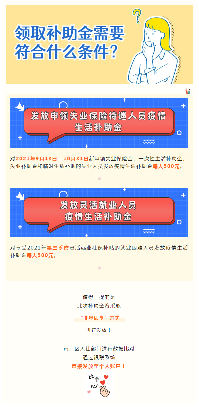 据“同安发布”微信公众号消息,近日厦门市人社局、厦门市财政局发布了关于发放就业困难群体疫情生活补助的通知,符合条件的申领失业保险待遇人员、灵活就业人员可获得疫情生活补助金每人500元(以下简称“补助金”)。