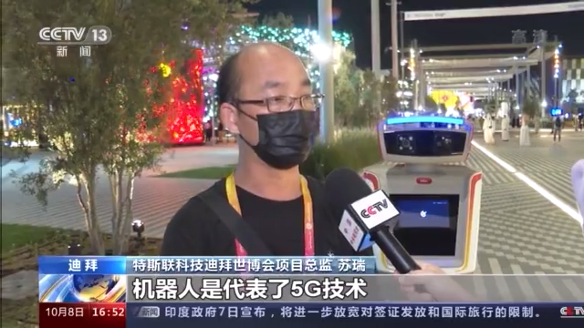 特斯联科技迪拜世博会项目总监 苏瑞:机器人是代表了5G技术、物联网技术以及人工智能技术一个综合体。我们中国企业在世博会里,有幸能参与到全流程的服务中来,体现了我们5G技术,以及人工智能技术的先进性。同时也把这种产品和整体服务,带到世界各地的人民当中,让他们能看到中国实实在在的科技发展。