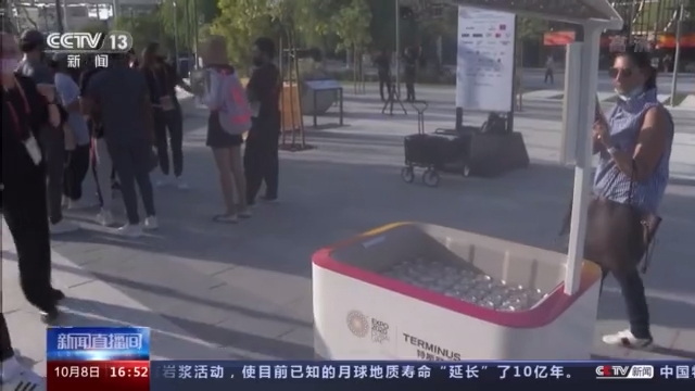 总台记者 龚明:在世博园区的主干道上还随处可以看到像这样一个巡逻机器人,它不仅能实时搜集路面的数据,同时也能通过摄像头测体温,来提醒游客们戴口罩。