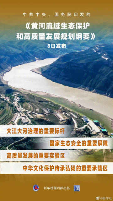 【#权威快报#|#黄河流域生态保护和高质量发展规划纲要#发布】中共中央、国务院印发的《黄河流域生态保护和高质量发展规划纲要》8日发布,规划范围为黄河干支流流经的青海、四川、甘肃、宁夏、内蒙古、山西、陕西、河南、山东9省区相关县级行政区,国土面积约130万平方公里,2019年年末总人口约1.6亿,这是指导当前和今后一个时期黄河流域生态保护和高质量发展的纲领性文件。(记者安蓓、魏玉坤,海报设计张晨光)