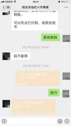 从犯罪嫌疑人手机获取的截图,嫌疑人通过微信联系“币商”支付人民币购买虚拟货币。 四川省凉山彝族自治州西昌市公安局提供