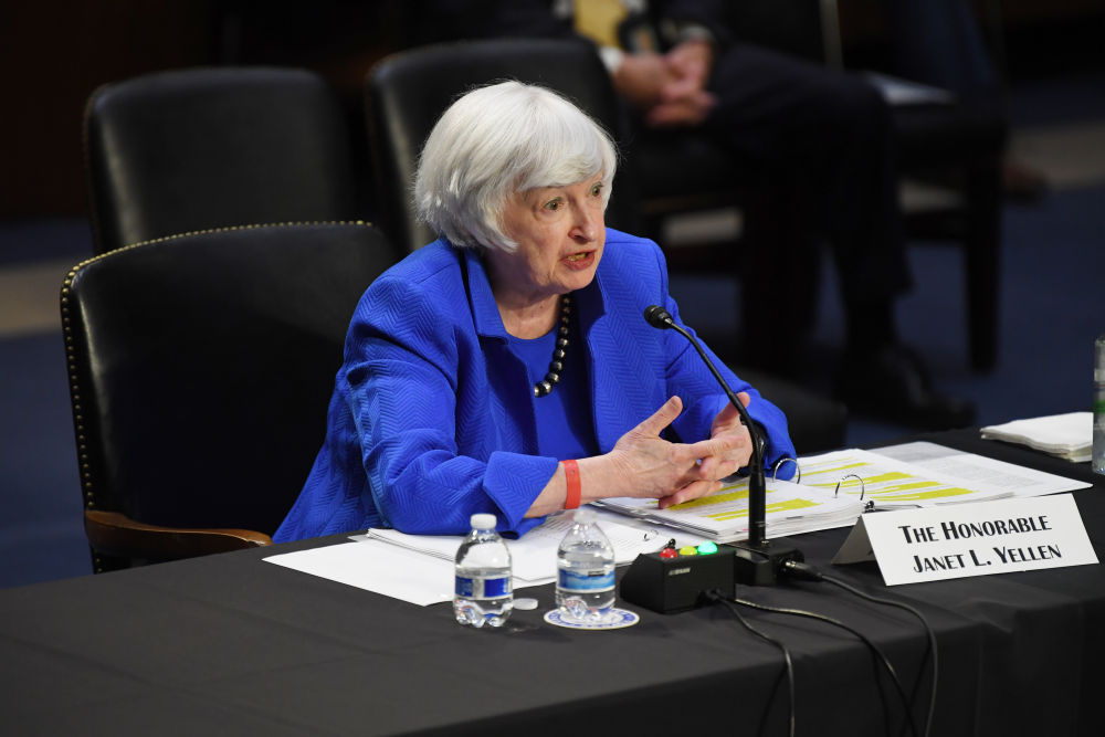9月28日,美国财政部长耶伦在华盛顿出席国会参议院银行、住房和城市事务委员会听证会。耶伦当日说,美国国会必须解决债务上限问题,否则联邦政府将面临历史上首次债务违约。(新华社发 Pool图片/马特·麦克莱恩摄)