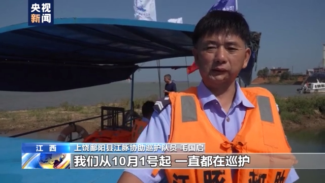 江西上饶鄱阳县江豚协助巡护队员 毛国启:我们从10月1日起,一直都在巡护,(每天)巡护两次,一天巡护里程在50公里左右。