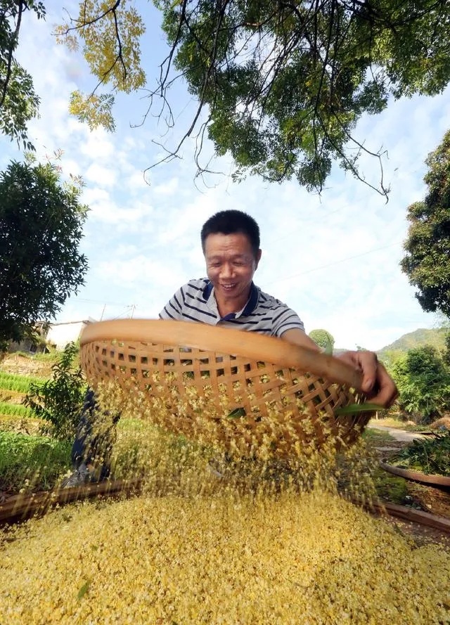 福建泉州有“打桂花”的习俗,打了桂花去做桂花糕、桂花酒等。图源:新华社
