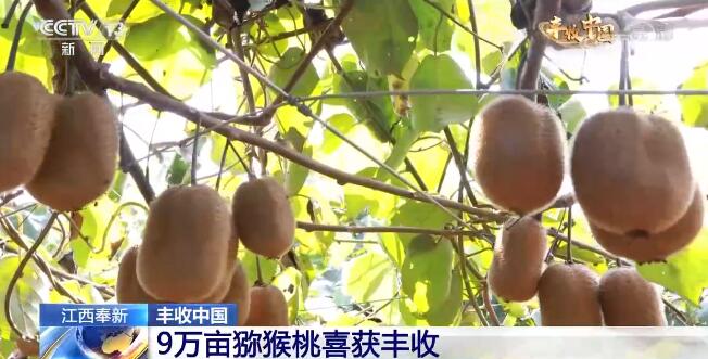 央视网消息:这段时间,江西奉新的9万亩猕猴桃喜获丰收,在猕猴桃园里一颗颗成熟的猕猴桃新鲜翠绿,挂满了枝头,我们一起去那里看看。