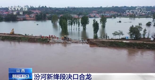 10月6日晚上,汾河洪峰进入新绛县域,当地组织防洪抢险1800多人、调集上百台大型机械,对汾河新绛段13.7公里堤坝进行了加高加固。但由于连续强降雨,坝体土壤含水量饱和,且上游来水增多,10月7日傍晚,汾河新绛段桥东村附近堤坝出现决口。经过24小时昼夜奋战,决口被成功封堵。由于当地第一时间撤离了洪水影响区域所有人员,目前未造成人员伤亡。