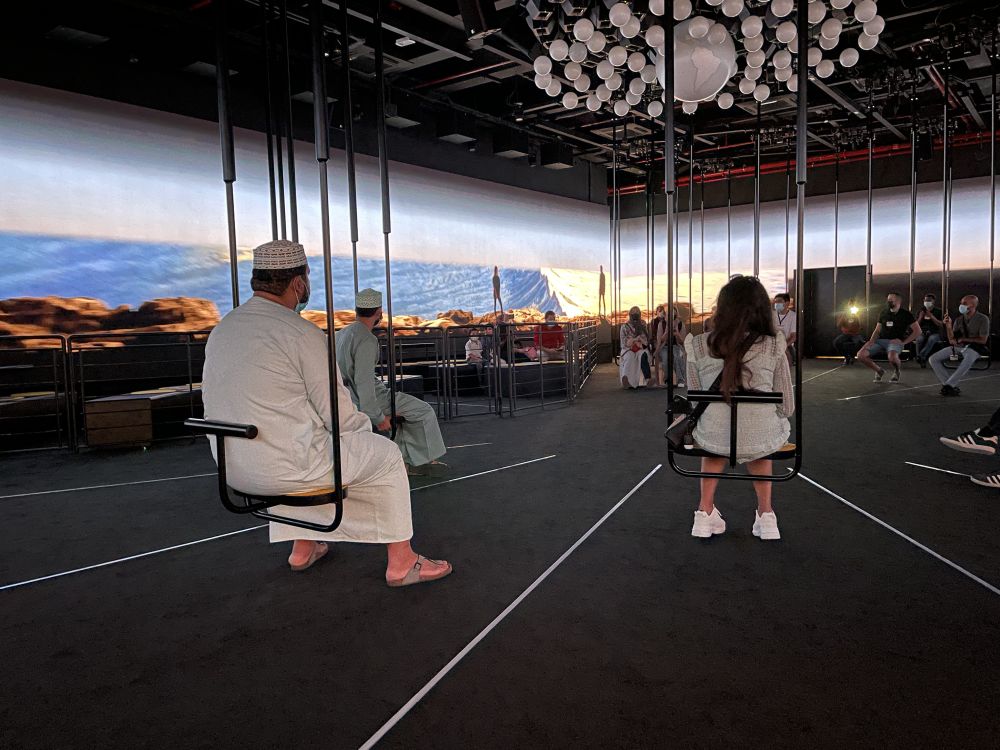 在沙丘形状的以色列馆,LED屏上的演员们邀请参观者哼唱共同的旋律,告诉大家:“虽然你我彼此不同,但正如不同的音符,汇聚一起才能组成美妙的音乐。”