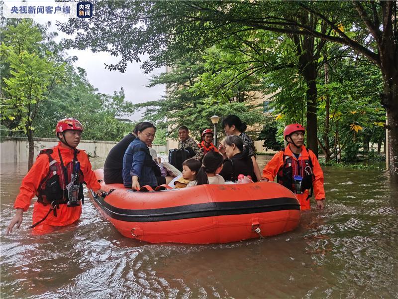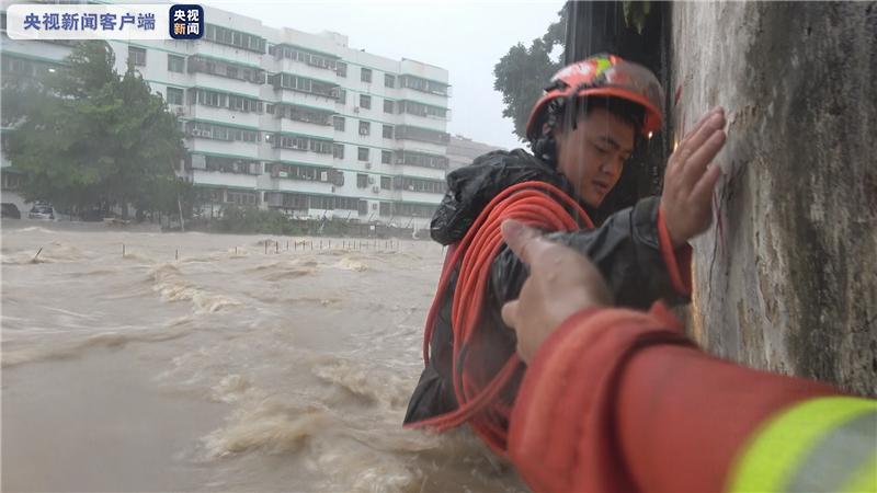 同日中午,在海南临高县,一小区因地势低洼遭雨水倒灌后停水停电,急需转移。蹚过齐腰的积水,消防救援人员将橡皮艇推至居民楼门口,将被困的13名群众和一名刚出生几个月的婴儿疏散到安全区域。