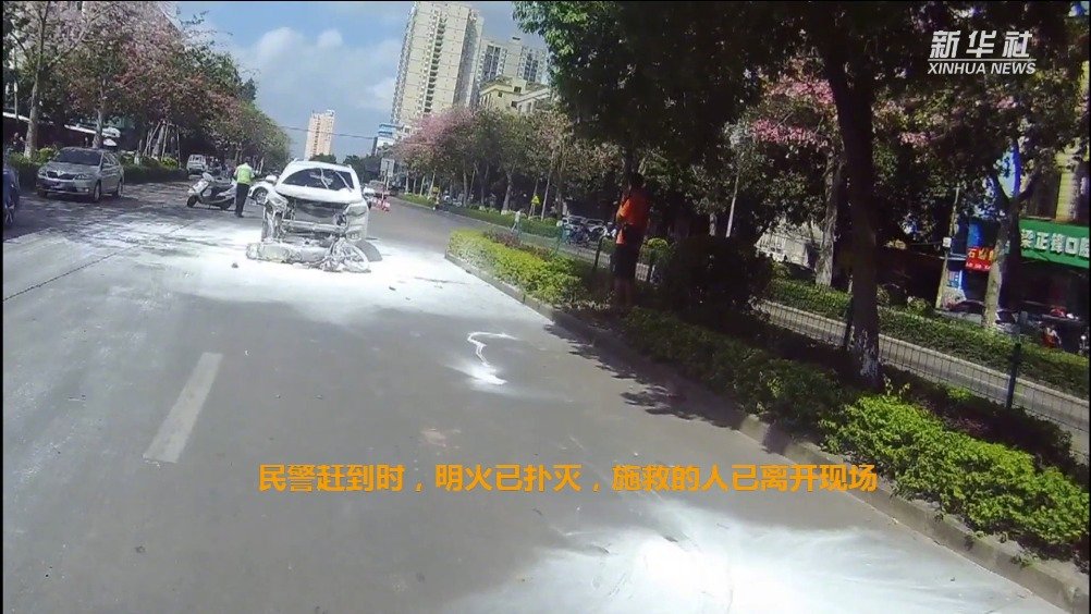 【#热血路人从火中救出摩托车司机#】近日,广西钦州市南珠东大街发生一起小轿车与摩托车碰撞事故,现场燃起大火,摩托车驾驶人被火包围。两名路人不顾危险,将摩托车驾驶人从火中拉出施救;随后借来灭火器,扑灭车辆上的火。摩托车驾驶人被及时送医,暂无生命危险。(记者朱丽莉) 新华社的微博视频