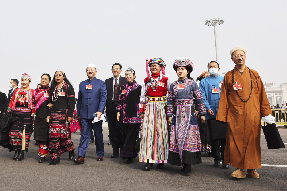 △2021年3月4日,中国人民政治协商会议第十三届全国委员会第四次会议在北京人民大会堂开幕。这是全国政协委员走向会场。