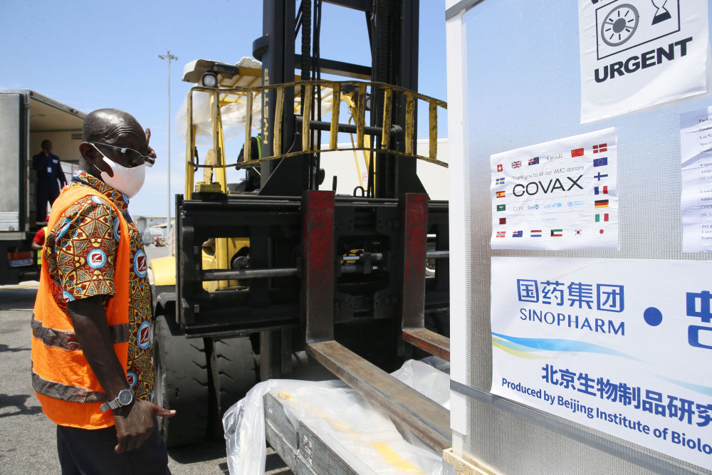 △工作人员在科特迪瓦阿比让国际机场转运中国国药集团通过“新冠疫苗实施计划”供应的新冠疫苗(2021年9月18日摄)。
