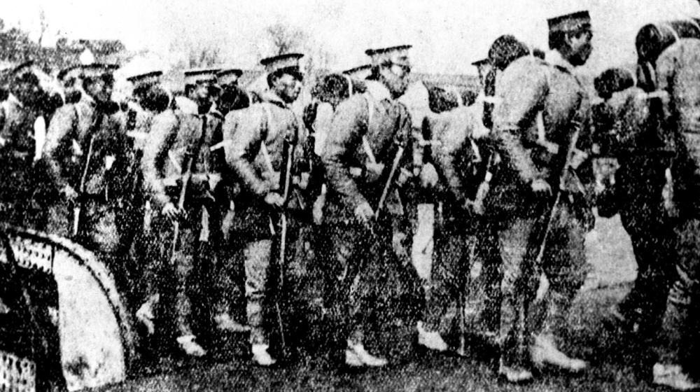 △武昌起义革命军开赴前线(资料照片)。