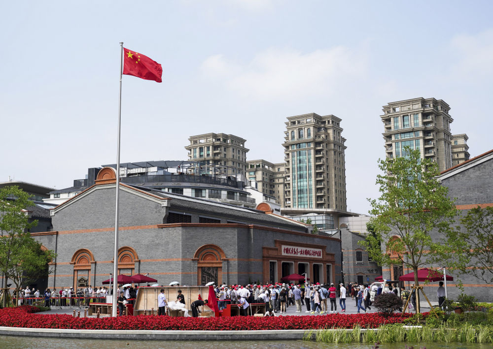 △观众排队进入位于上海的中共一大纪念馆参观(2021年6月12日摄)。