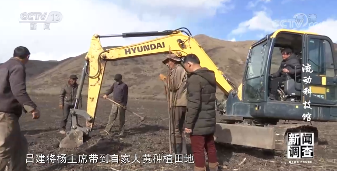吕建将杨主席带到自家大黄种植田地,作为村里最早一批富起来的人,目前他已经帮女儿在北京买了房,现在他的目标是希望能带领全村人民共同富裕。村里目前在大黄的粗加工上期待技术迭新,用机器取代一部分人力劳动,希望得到科协的帮助。
