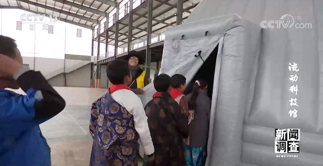 在若尔盖共有12个民族聚居,全县8.2万人中92%为藏族人,绝大部分孩子都没有机会走进过实体科技馆。眼花缭乱的展品里,一座充气的球幕影院中,传出一阵阵孩子们的惊呼声。